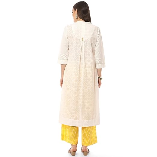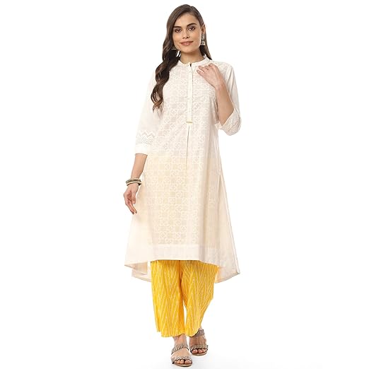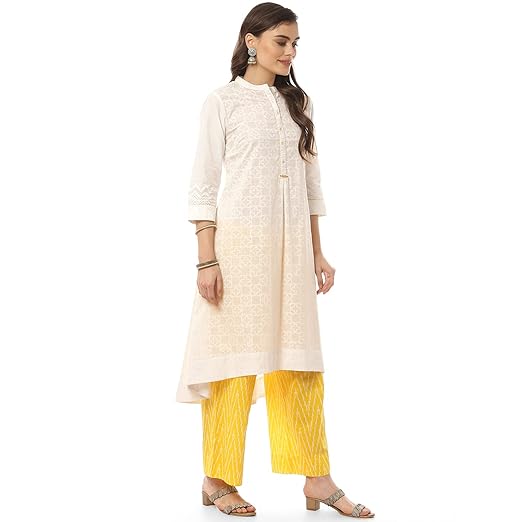 BIBA Women Cotton A - Line Kurta Cropped Palazzo Suit Set