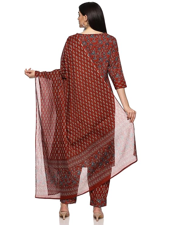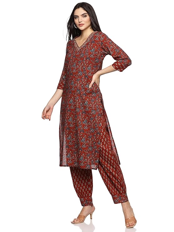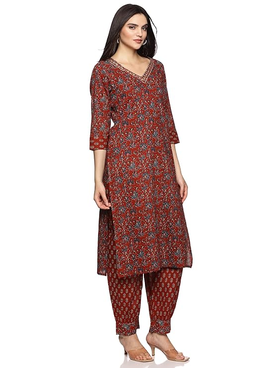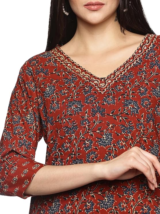 RAJMANDIRFABRICS Women's Cotton Hand Work & Floral Printed Straight Kurta Set